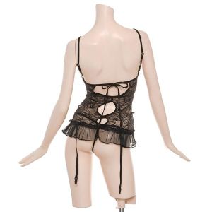 ひとめ惚れ!靴にレースアップ柄があってかっこいい!すごい透けるのも上手でおしゃれだよ。脚にもあるし、服とあうから街でもつかえるの。スカートやブーツとあわせるともっとおしゃれになれるって。ちょっとえっちな部分はね、おっぴろげちゃえるから便利だよ。