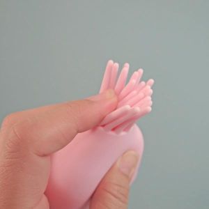 『花水木』っていうアタッチメントは、4つの花びらが敏感な所を優しく刺激する医療グレードシリコンのもの。触り心地がやさしいから身体に優しく使えるよ。45mmのデンマにも使えるよ!