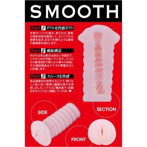ええと、これが「SMOOTH 織田真子」ってアダルトグッズなのよ。ちょっと大きめサイズで、もっちり感があってリアルさもあるんだって。それにグリップの段々が内部まで続いてコリコリ感があるんだって。そして、最奥部にはとってもセクシーな斜めイボがあるんだって!