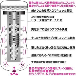 まずね、快感学っていう科学的なものから作られてるんだって。長くて高まりっぱなしの気持ちよさを実現してくれるって、すごくすごくうれしいよね。螺旋ヒダっていうのもあって、振動やすりこみで反射性勃起に導いてくれるんだって!