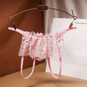 おおきなレースのついたショーツがあるんだって知ってた?金の糸が織り込まれてて、レースがたくさんついているの。前と後ろにはベールみたいについているのよ。めくれるとひらひらして、すっごく楽しいの!でもショーツは紐だけでできているから肝心な部分は全部見えちゃうの。