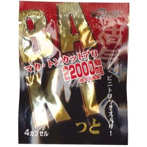 「愛は体力」が大事な、あなたにぴったりの商品だよ!マカ、トンカットアリ、醗酵黒にんにくの3つの素材を使ってるんだ。マカっていう植物はペルー原産で、体を元気にする栄養やビタミンが入ってて、疲れやすい人にオススメ!トンカットアリっていう名前の由来はロングジャックで、男性の元気や疲れを改善するカッシノイドが含まれているそうだよ。パッケージサイズはW75xH100×D15だよ。