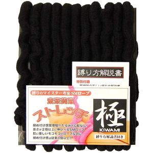 みなさん、こんにちは!今日は「未来拘束ストレッチ・極 ブラック」というゴム芯入り特殊SM拘束ロープのご紹介です。このロープは、通常のロープよりも長さが2倍以上に伸びる不思議なロープなんだよ!脅威の伸縮性で、4mが10mになっちゃうってすごいでしょ?