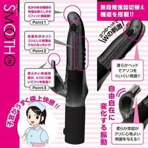 みんな〜!今日はアダルトグッズの「スムースイン【ブラック】」の紹介するよ!この商品は、初心者でも安心して使える細い先端があるよ!女性に優しいポイントが3つあるんだ!1つ目は、安心のソフト素材!2つ目は、挿入しやすい形状!3つ目は、日本人のサイズだから自分に合った使用感が分かるよ!さらに、この商品には、強弱切り替えが自在な無段階の振動があるんだ!そして、滑らかなヘッドでアソコをグイグイ刺激してくれるんだ!柔らかい突起がクリに心地よく刺激を与えてくれるから、気持ちいい快感を感じることができるよ!みんなもぜひ使ってみてね♪