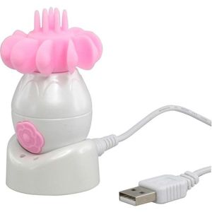 とってもやわらかいシリコンでできたマシーンで、10枚のお皿のようなのがついてるの。それで舌をず~っとなめまわしちゃうんだ。強さやリズムも3種類あって、好みのものを選べるよ。回転は一定だけど、持ち手の向きを変えると上下になめたりできるの。ローションとも相性がいいから、とっても気持ちいい。洗うのもじゃぶじゃぶできるし、静かだからね。