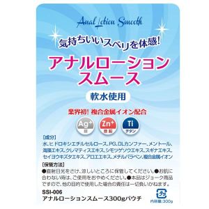 ねぇねぇ、知ってる?今、すっごい素敵なグッズがあるんだよ!それは、「アナルローションスムース300gパウチ」っていうんだ。このグッズの良いところは、銀や亜鉛、チタンといった3種類の金属イオンが入っているんだって!それに、DLカンファー&メントールも入っているから、冷たくてスースー感じがして、痛みも和らいでスムーズに入れられるようになるんだよ!