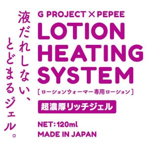 液だれしちゃう心配もないよ!だって、とどまってくれるジェルだからね。そして、あの有名な「G PROJECT × PEPEE」が作った「LOTION HEATING SYSTEM[ローションウォーマー]」で温めると、もっとぽかぽかして感じられるように特別に開発された専用ローションなの♪