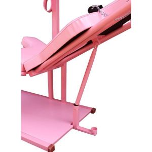 「ねえねえ、手枷と足枷が8ヶ所もあって、いっぱい体勢を変えてSっぽい恥ずかしいポーズできるよ!」って、器具に手や足拘束したり上下逆さまにして、いろんなポーズで楽しめるって♪それに、台にはガラスの鏡がついてて、恥ずかしいところがバッチリ見えちゃうから、恥ずかしい気持ちもくすぐられるよ。