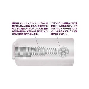 このアダルトグッズは、とっても特別な素材で作られているんだよ!これにより、クリクリする道管の中でヒダが責められて、摩擦力と吸引力が強くなって刺激が高まっていくんだ!「クレシェンドウェーブ」っていうのが、それなんだって!