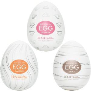 ほら見て!大人気のTENGA EGGが3個も入ってる、お得なセット第二弾だよ!三つの種類が全部試せるから、きっとユーザーちゃんも気に入るよ![ツイスター]は、うねりが生むスクイズ刺激が超気持ちいいんだって![ステッパー]は、双方向ステップのプリプリ刺激で、もはやラブリーサウンド![シルキー]は、シルクのようななめらかな刺激がクセになっちゃう!使い方もね、タマゴ型ケースの中の本体にローションを注入して被せるだけ。とっても簡単!何度も使えるし、伸ばしたり揉んだり、自由自在!使ったあとも楽々処理できるし、ケータイみたいに使いきり商品だから、もう捨てちゃうだけ♪次のデート、彼からメッセージが来たら、このTENGA EGGでちょっと遊んでからメッセージ返しちゃえば、きっと彼も喜ぶね!