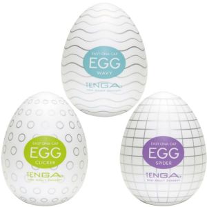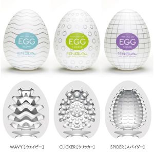 アダルトグッズのTENGA EGG SEASON-1SETってご存知ですか?すご〜い、今回は3個も入ってるから、お得ですよ!定番のウェイビー、クリッカー、スパイダーの3種類だよ!ほら、ウェイビーはブルブルっと連続ウェーブのような刺激が魅力!クリッカーは大小の突起がコロンコロンっと刺激がくるから、もう気持ちいい!スパイダーはアミ目がクッキリと刺激を生むので、感度が上がるかも!使い方もカンタンだよ!タマゴ型ケースの中にローションを注入して、被せて楽しむだけ!EGGは超ストレッチ素材だから、使い方は自由自在!ひっぱったり、もんだり、握ったり、撫でたり…。そして、使用後も簡単!ケースに戻して、捨てるだけ。え?でも、この商品は1回使い切りの商品だから、注意してね!