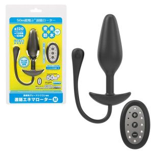 ハロー、みんな!今日は 「遠隔エネマローター M」の説明をするよ!これで、50メートルもリモコンの離れた所で遊べるんだよ!びっくり!しかも、嬉しい12個の LED が付いているから、パートナーの状態が手元でバッチリ分かるんだよ!これで究極の遠隔ローター完成さ!