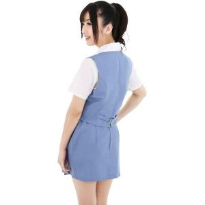 さて、この「カレだけのOL」の特徴を教えてあげるね。なんと、半袖ブラウスにベスト、そして左前スリットスカートの3点セットなんだって!しかも、生地がとっても薄くて軽いから、カレに優しく触れられるときも、窮屈に感じないよ。