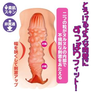 中に入れると、とろーんと肉壁にぴったりフィットするんだ♪大粒と小粒の二つの粒があって、中はヌルヌルで不規則な刺激をあたえてくれるんだよ!