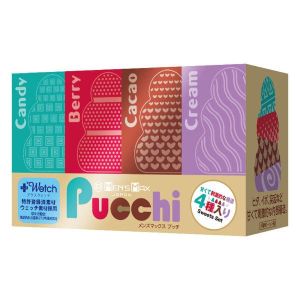 メンズマックスプッチが4種入ったお得なセットボックスなの♪それぞれクリオネ、オクトパス、スクイッド、ジェリーフィッシュって名前なんだよ!「クリオネ」は大きい突起がいっぱいで大胆な刺激があるんだって!「オクトパス」は吸盤とイボが密着してくっついてるみたいで、気持ちいいらしいんだ。「スクイッド」は凸凹を進んで、奥へ奥へって気持ちよくなれるんだって!「ジェリーフィッシュ」は長い突起で全体を刺激してくれるみたいだよ!