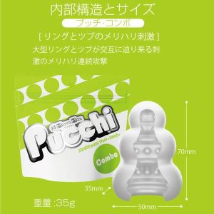 「メンズマックスプッチ」というお得なセットボックスがあるの!4種類も入ってるよ!「ウェーブ」っていうのは、ウェーブのようなヒダが絶えず打ち寄せてくるから気持ちいいよ!「ドット」はたくさんのツブツブで繊細に刺激するから、きっとすごく感じるんだろうな。そして「シャワー」はまったりとしたヒダが優しく降り注ぐから、とっても気持ちいいの!最後に「コンボ」は、大型リングとツブが交互に迫り来るよ!これは刺激的だよね!