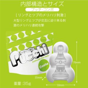 ほらね、ポケットに入るサイズのローションいらずのプッチが新しくなって登場したんだよ!柔らかい素材から内部もパッケージも全部新しくなったんだって。これからは「HD成形」という技術を使って突起のデコボコ感がもっとクッキリになったんだって。触っても粒が違うの!素材もモッチモチだし、水分がつくとねっとりした潤いに包まれるんだって。あと「コンボ」っていうのもあるんだけど、リングとツブがメリハリのある刺激を連続で与えるよ!