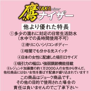 「鷹ナイザー」には何がいいかって、まずはバイブレーションが最高に気持ちいいの!モーターがパワフルでコリコリした刺激を与えてくれるから、もうたまんないって感じるかも!それから、大きさもちょうどいい感じで、持ちやすくて使いやすいんだよ。リラックスして楽しめるから、最高に贅沢な時間を過ごせること間違いなし!