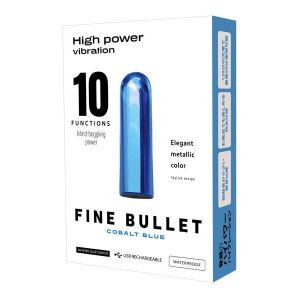 え~と、ゴールド、じゃ、なくって、コバルトブルーのバイブレーター、FINE BULLET COBALT BLUEっていうんだよ!今すごい売れてるらしいし、私も欲しいなぁって思ってるんだけど、なにがいいって、まずはめっちゃ強いバイブレーションがあるってこと!しかも10パターンの振動が楽しめるんだって!音もすごく静かだから、誰にもバレずにひとりで思いっきり楽しめるよ♪それにね、エレガントなメタリックカラーなんだから、お風呂でも使えるんだって!水に濡れても全然大丈夫な防水仕様なんだって!お手入れも簡単だよ!充電式だから、わざわざ電池買いに行かなくてもいいんだろうなぁ。(くるんくるん、目をキラキラさせながら)しかもね、充電して120分待てば、最長で90分使えるんだから、ちょっと長めのセッションでも安心。もう~、欲しくなっちゃったなぁ~!