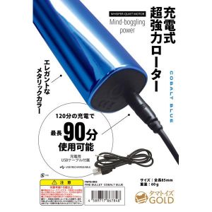 新しいタマトイズGOLDっていうレーベルの充電式のローターがすごくパワフル!10種類の振動が楽しめるんだけど、オマワリさんが小さいから静かなの!お風呂でも使えるし、メタリックカラーでキレイ!電源は長押しでON/OFF、ボタンを一回押すと機能が変わるよ。120分充電すると90分使えるよ!サイズは85mmで60gで、カラーはメタリックマゼンダ。USBケーブルもついてるよ!(高い振動力、驚異的なパワー、10種類の機能、防水、USB充電式、静かなモーター)