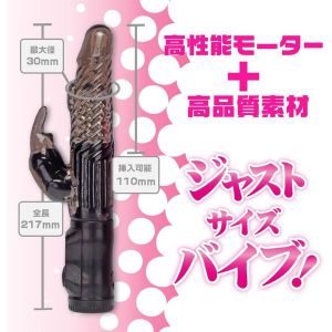 が〜〜ん!新しいバイブがでたよ〜!ストレス臭カットのTPE素材を使って、ハイパワースイング&サブバイブ振動を楽しめるんだって!大きさはジャストサイズで最大径30mmだよ〜。Gス●ット刺激突起もバッチリ配置されているし、50mmにはパール回転アクションもあるんだ!みんなに使いやすい、スタンダードなバイブだよ〜!