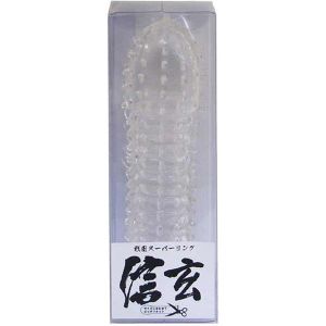 ねえねえ!これからお話するのは、アダルトグッズの「戦国スーパーリング信玄 クリア」ね!えへへ、わたしが最近買ったんだけど、すごく良くてオススメなの!これ、パートナーのアソコに装着すると、さらにパワーアップするのよ!信玄っていう戦国武将がモチーフなんだって☆