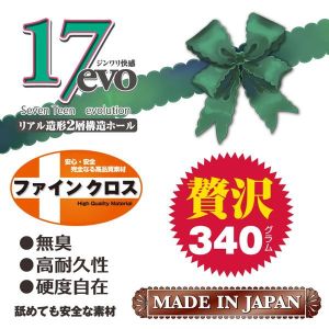 ねえ、ねえ、聞いてて。セブンティーンエボリューションって、舐めても大丈夫な素材でできているんだって!食品衛生法にも合格しているから、安全なんだって!それに、セブンティーンがさらにパワーアップして、2層構造ホールになったんだよ!外側はふんわり柔らかくて優しい素材で、内側はもっともっと超ソフトな素材を使っているんだ。なので、すごーくぬるぬるっと気持ちいいんだよ!しかも、エアーを抜いちゃうとバキューム感が出るんだって!最高にグッド!