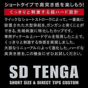 まずは、SD TENGAだよ!ショートストロークで大型突起をガンガン突くことができるカップなんだって!くっきりと刺激できる超ハード設計なので、快感がすごいんだよ!これで新しい快感を楽しんでね!