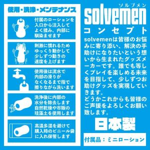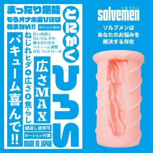 「ソルブメン」っていうすごいやつが、お悩みを解決してくれるんだって!「とにかくせまい」っていうお悩みがある人向けの、提案型お悩み解決ホールなんだって。素材は柔らかすぎず、固すぎずで、バランスがいいものになっているの。ねじれヒダ+狭さ+刺激がすごくいい感じで、毎日楽しめるって言うの!オナホ選びに悩む必要がなくなりますよ。日本製だから安心して何度でも使えます。