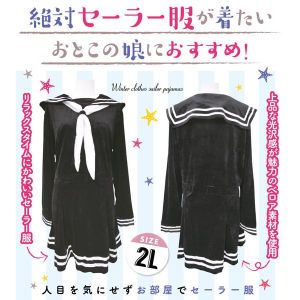 「ねえねえ、あたし、セーラー服って好きだよね?けど女の子向けのパジャマって子供っぽくて…ダメだよね?」そんなあなたには、冬服セーラーパジャマがオススメ!シックな黒色の長袖パジャマで、胸元に可愛い蝶ネクタイが付いてるんだよ。つるっと光るベロア素材でやわらかくて暖かいから、冬にピッタリ!サイズも大きめの3Lまであるから、体が大きめのおとこの娘でもOK!リラックスタイムに着て、おうち時間を楽しもう!