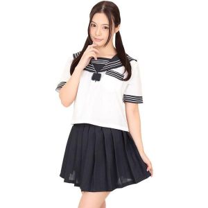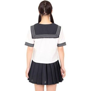そして、この商品の特徴は、セーラー衿、胸元、ポケット、袖に3本のラインが王道の白色で揃っていること!この白色がとっても綺麗で、清楚な雰囲気を出しながらエッチな気分も盛り上がるんです♪
