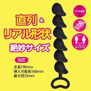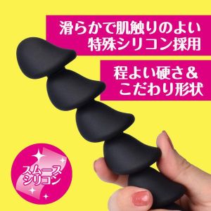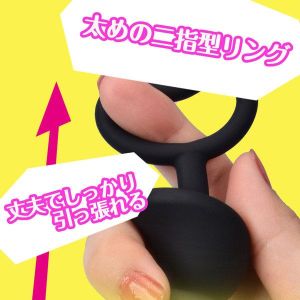 それで、素材はすごくスムースマットシリコン素材で、とっても肌触りが滑らかよ!硬さもちょうどいいから、すごく気持ちいいのよ!そして、出し入れの時にはポコポコと快感が連続で感じられるの。これは最高!持ち手もね、太めで二指型のリングになっているから、すごく使いやすいんだよ!