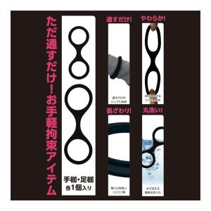 あの子が好きな人がいて、でもその人に従ってSMプレイをしてるみたい。でも、簡単にできる手枷&足枷があるんだって!ただ手や足を通すだけでできるから、すごくかんたん。男の人もOKで、カンタンに洗えるし、見た目もタブーじゃないから、スッと通して拘束プレイを楽しめるみたい。手足を拘束して、行動を制限するのがSM束縛プレイっていうの。