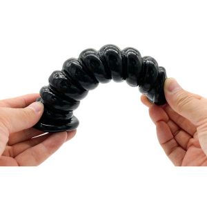 えっと、ディルドっていうのは、アソコに入れるおもちゃのことなんだよ。今回は、4本の線があってねじれる黒いカタチのディルドが出たんだって!それで、アソコに入れるとグルグル回転しながら気持ちいいって言うんだ。サイズは最大で40mmだよ。初心者から上級者まで使えるみたいだよ。あと、別売りで潤滑剤もあるよ。素材はTPEで、作られたところはCHINAだよ。