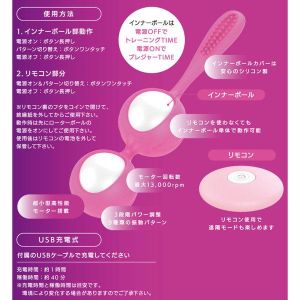 すてきなポシェットから新しいプレジャーツールが出たよ!アミちゃんは、おうちでエクササイズもラブタイムもできちゃうの♪・ボール2つでトレーニングできるよ・ボールだけでもローターとしても使えるんだって・カバーはやわらかくてシリコン素材・バイブは12種類のパターンが選べるの・リモコンで遠くからも操作OK・USBで充電できるし、生活防水だから安心だよ!でもね、この商品は冗談用だから、別な使い方をすると保証はできないよ!