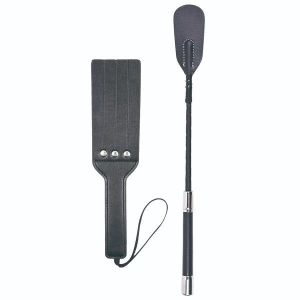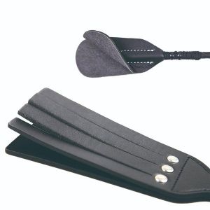 ほらほら!パドルウィップセットだよ!そんなに大きくないから、どこにでも持っていけるって!さてさて、この小さい鞭はさ、コスプレやレザーファッションをする時にも使えるんだって!しかも、先端はやわらかいから、そんなに痛くしないんだよぉ。でも、強く打つとカッコいい音も出るんだけど、それを聞くのが興奮のチャンス!その点、スパンキングプレイ初心者から上級者まで大丈夫だよ。
