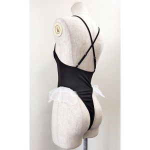 ねえねえ、見習い魔女テディって知ってるかしら?これがまためっちゃかわいいのよ!まずはこのハイレグのレオタードのどぎつさを緩和する透け感のあるフリルがポイントなの。お腹見せ&大胆な谷間もあるけど、白いケープでちゃんと感も出しているの。ストッキングもずり落ちにくい仕様なので、楽に遊べちゃうわよ。帽子風の髪飾りは、ピンで固定しなきゃね。レオタードのクロッチはスナップボタン留めで、皮膚を挟まないように気をつけてね。今日から、私も見習い魔女テディと一緒に遊びたいな!