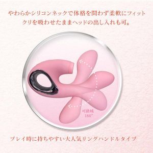 女の子にオススメのク○吸引ローター!焦らしや本気イキまで自由自在!リングハンドルとシリコンネックで快感を手放さない!クンニのような吸引力がク○を優しく激しく翻弄、強さ調整も5段階!乳首にもOK!奥イキバイブはG○ポットをきゅんきゅん刺激。やわらかネックでク○に柔軟にフィット。セルフでもパートナーとのラブでも使えるリングハンドル付き。日本情緒あふれるサクラ色の高級シリコンコーティング。付属品は充電用USBケーブルと取扱説明書。
