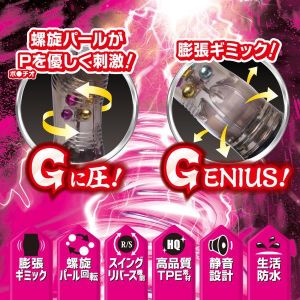 まず、スイングピストン×膨張ギミック×ペロペロサブバイブ×螺旋パールの4つの特殊ギミックが、とっても刺激的だからね!Gスポット付近での膨張圧刺激が、すっごく気持ちいいって聞いたよ!