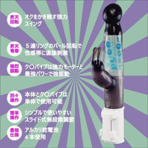 5連パールのトルネード回転と超強振のク○バイブで一気にお空へ!入れるところはもっちもち素材を使って、かたちも変えて優しく圧迫します。まるい形なので、Gスポットにも簡単に届くし、イっちゃう人にも合ってます。5連パールは中で回転してポルチオをグリグリなでなでして最高にフワフワします。ク○バイブも強力だから、注意してね。これだけでも楽しめるのに、Gスポット・ポルチオ・ク○トリスを3点攻めで大満足。潮吹き昇天だね!本体とク○バイブは別々に操作できるから、自分好みに調整しよう。