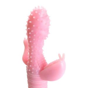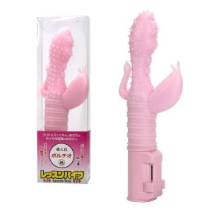 ぴょんぴょんしてたら、ポ○チオとG○ポットとク○トリスを刺激しまくるバイブがあったの!やわらかくて初心者でも大丈夫だって。ぼんやりしてたら、大きめヘッドでG○ポットをコスコスされるし、ク○トリスもバイブでピクピク。2つの操作で、イッちゃうのがいろんなパターンで試せるんだよ。電池も4本付いてるけど、ほかにアルカリ電池が必要だよ。