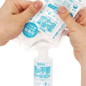 おもちゃのオナホのために作られた特別なローション「洗い不要ローション」。洗う必要がなく、ティッシュでサッとふけばOK!さらに、新しい詰め替えパックも手軽でよくエコ。300mlも入って、容器に移し替えたり、そのままでも使えます。詰め替えパックは、かわいいオナホ愛好家にとっても、お得で便利な商品です。