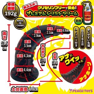 「アナホーン180 イチハチマル」のサイズは、最大直径44mm、有効部分170mm。全長はミドルタイプで、ちょうど180mmです!そして、100%シリコン素材なので、べたつかず、安心して使えますよ!