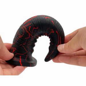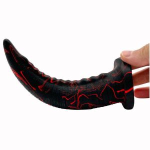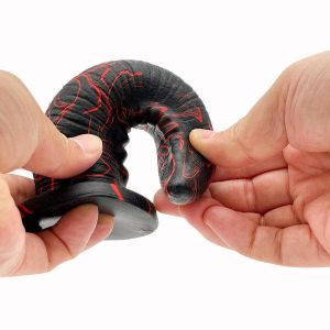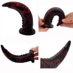 このディルドは、角のようなカーブ形状で、先端がとっても使いやすいんです!そして、そのカーブのボコボコがポイントに直撃するので、気持ちいい刺激を感じられますよ!もちろん、全体が柔らかく、弾力があるので、いろんな角度に曲がってフィットします。しかも、自立する土台付きで、ストッパーもついているので、使いやすさも抜群です!