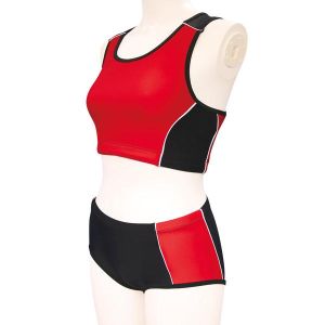 ねえねえ!知ってる?女子陸上部ユニフォームがあって、それがおとこの娘用にもあるんだよ!すごくピチピチで着心地がいいんだって!カラダにぴったりフィットするから、動きやすくって運動するのが楽しいんだって!スポーツブルマもすごくフィットして、おし○にもおさまるんだとか!デザインも赤と黒のスポーティーな感じだから、私たちも陸上部みたいでかっこいいよね!あ、あと2Lサイズでバストが93~101cm、ヒップが97~105cmの人が着れるよ!素材はナイロン80%とポリウレタン20%でできてるみたいだよ!一緒に運動して楽しもうね!