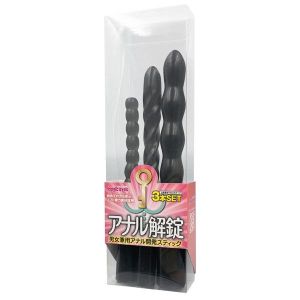 ハイ、みんな!今日はすごーくエッチな話題がありますよ!アダルトグッズ「アナル解錠スティック ピンク ブラック」の紹介をします!このグッズは初めてのアナルセックスでも安心して使えるように、3ステップで開発できるセットになっているの。男性も女性も使えるので、パートナーと一緒に楽しむこともできるんだよ!