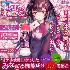 「恋するオトメエキス」というローションは、思春期女子の体臭と人気の香水をブレンドして作られた微かな香りが特徴。さらに、オナホ使用に向けたアルギニン・ヒアルロン酸・プラセンタエキスを配合しているので、やわらかくトロトロな使い心地も最高。機能性と『萌え』を合わせ持つハイブリッドなローションなんだよ!