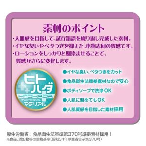 素材はヒトハダマテリアルで、軟らかくて柔らかい肌触りが気持ちいいわ。日本製だから、安心して使用できるわね。そして、おなつゆスティックのローションも付属しているから、すぐに使用できるのが嬉しいところだわ。エッチなお仕置きを楽しむケアグッズとして、ぜひ使ってみてね♪