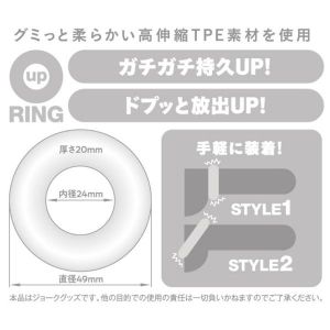 もっと手軽に、スマートに。グミっと柔らかいメンズリング『OupRING』が登場。自分サイズにフィットして、カラダをぴっちり締め付けて気持ちよさUP!初心者の方にも使いやすいパッケージで、カラーは4色。パートナーと一緒に使えるリングで、20mmの厚みでサポートします。