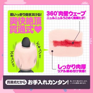 まずは、その形状からお話ししよう!ズッコンは貫通式のホールなんだ。貫通式っていうのは、先端から奥まで入り込めるってことなんだって!だから、男性の気持ちいいところをズッポリと刺激することができちゃうの!